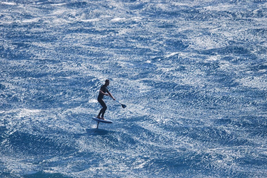 Ténérife. Les sensations de glisse et de vitesse ne sont comparables à aucun autre sport aquatique. Cela s’apparente à du ski hors-piste. J’étais seul au large, à utiliser la force du vent et l’énergie de la houle de fond, je ramais et générais assez de vitesse pour permettre à ma planche de décoller. Je m’efforçais alors de tracer de belles courbes tout en « lisant » le plan d’eau.