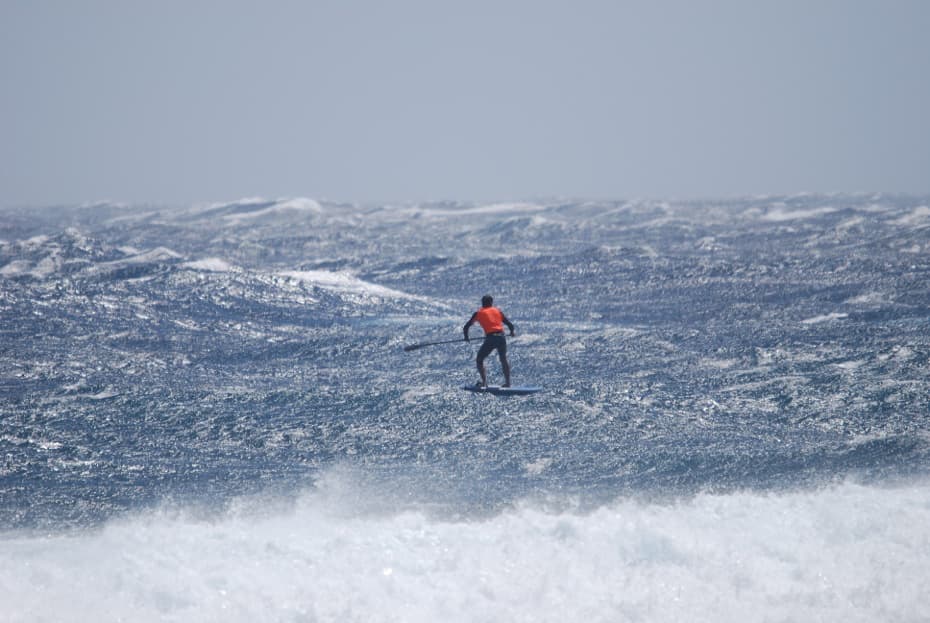 Les photos sont réalisées par l’équipe Paddlesport au large d’une île canarienne, dans 35 noeuds de vent 2,50 mètres océanique…